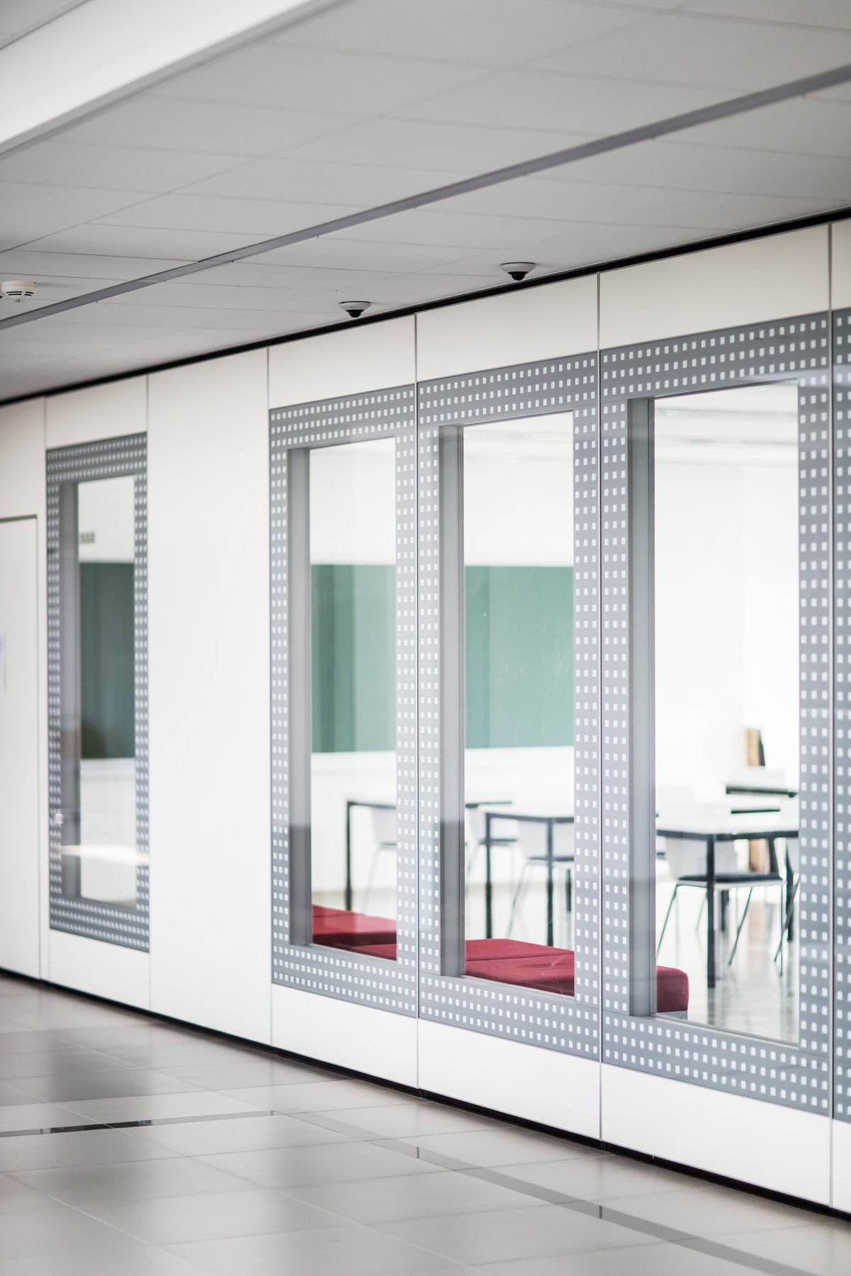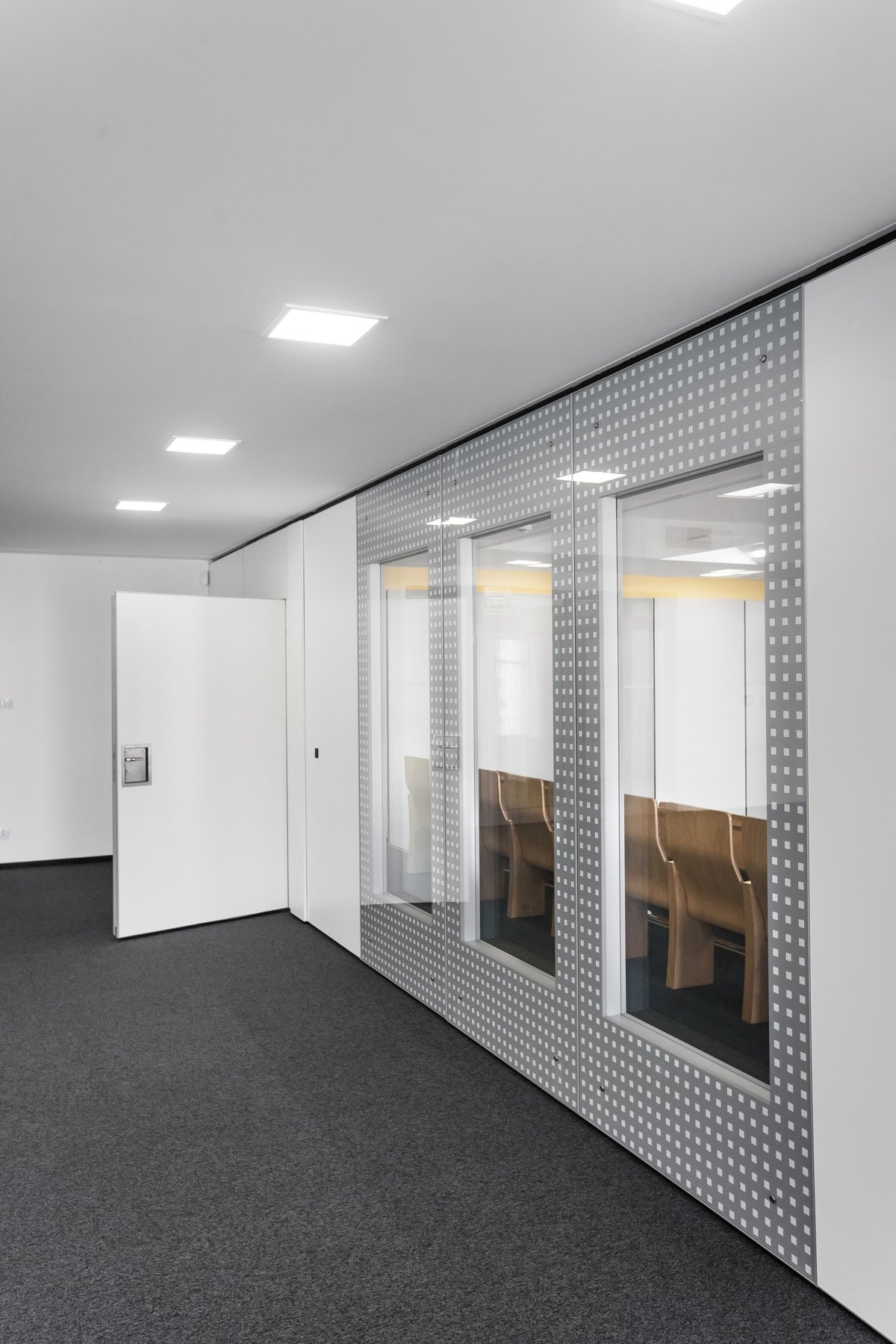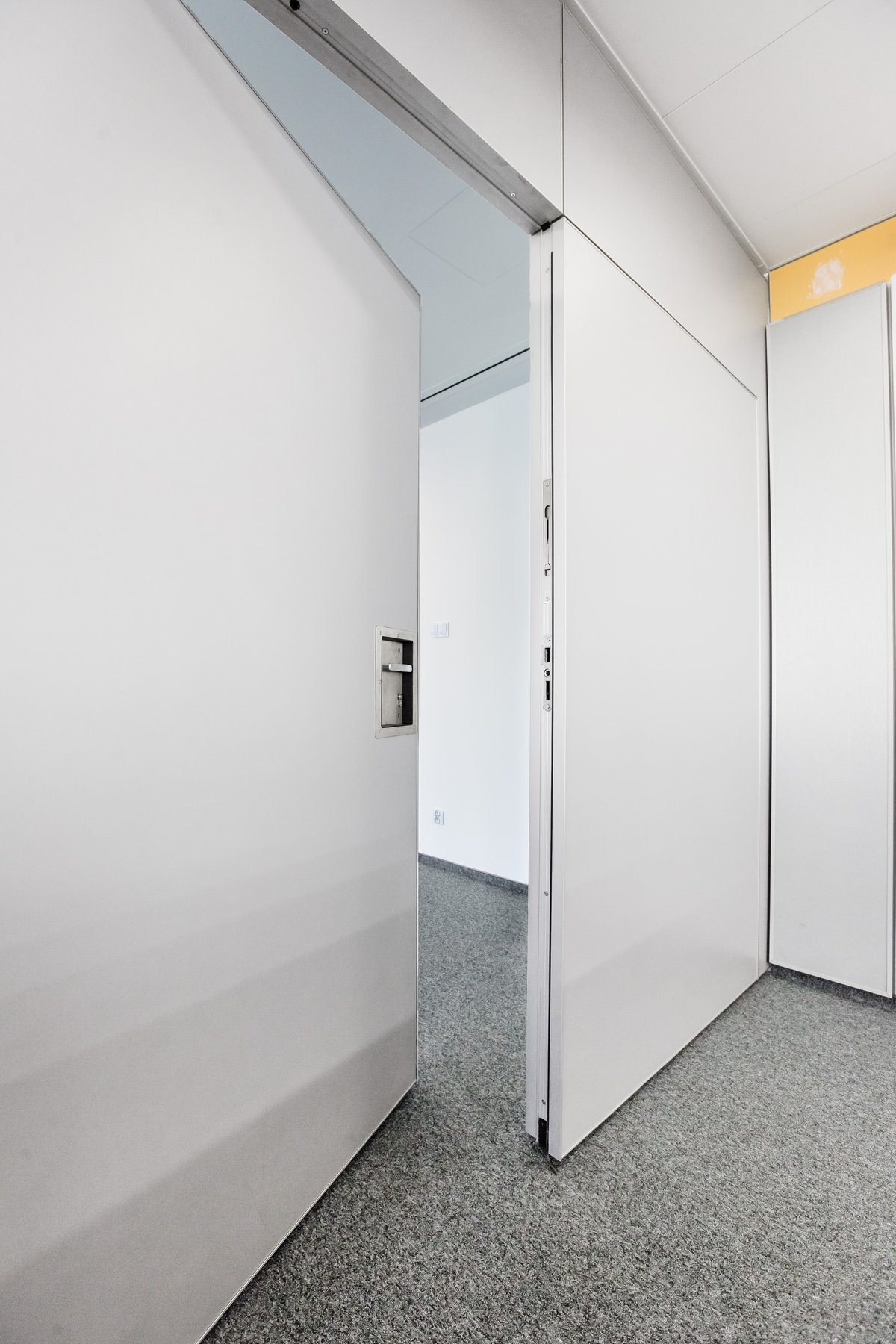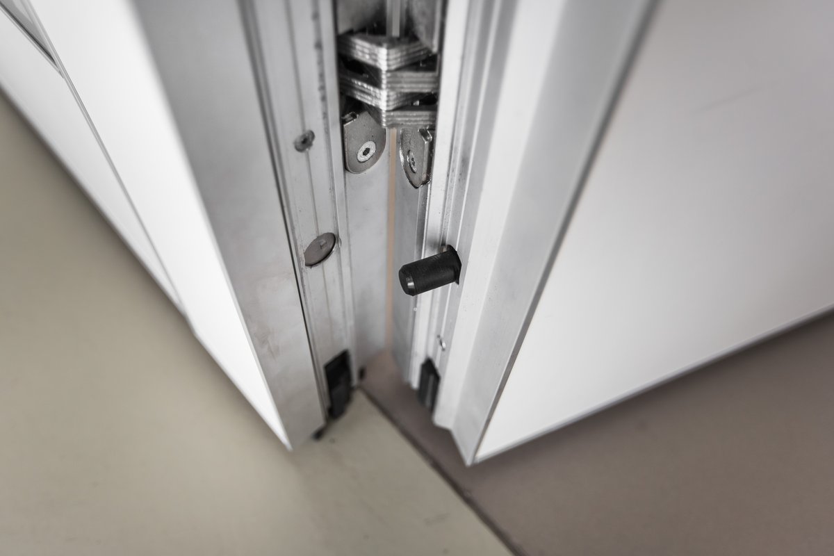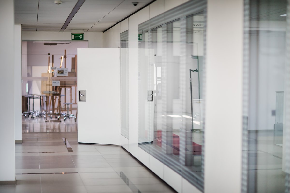 Parete mobile manovrabile per dividere uno spazio aperto in sale più piccole.