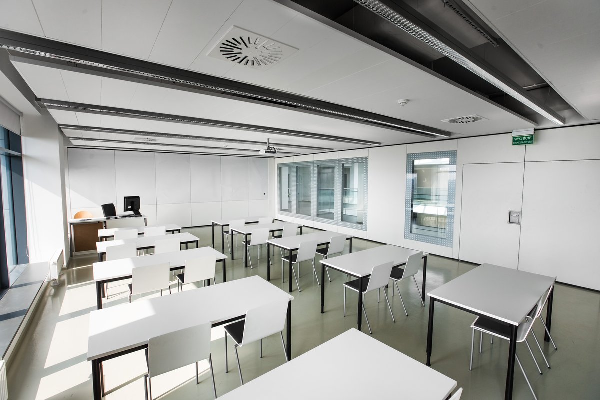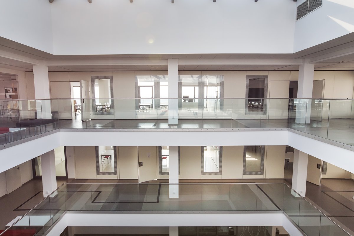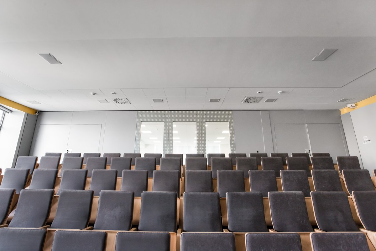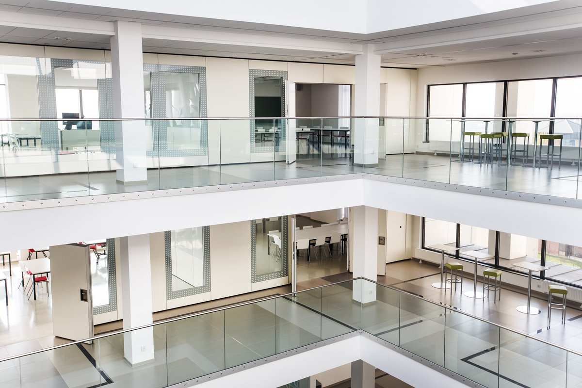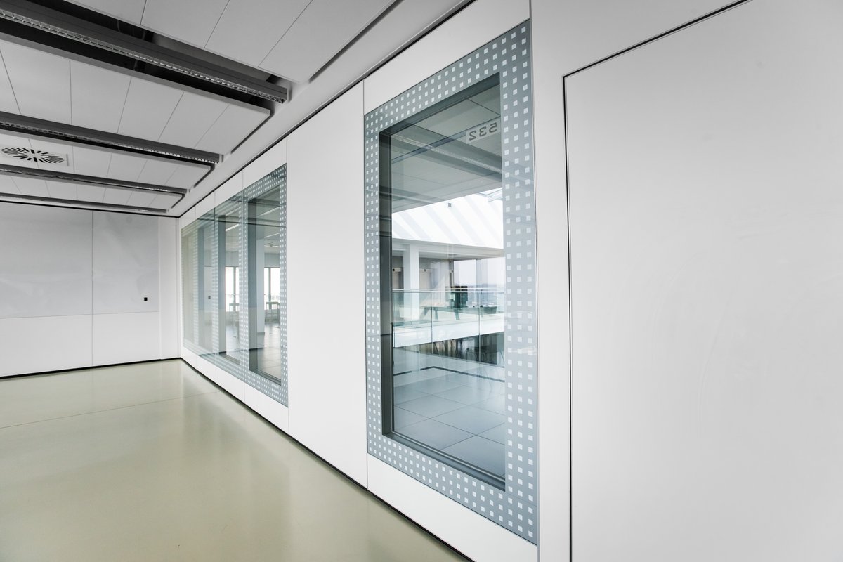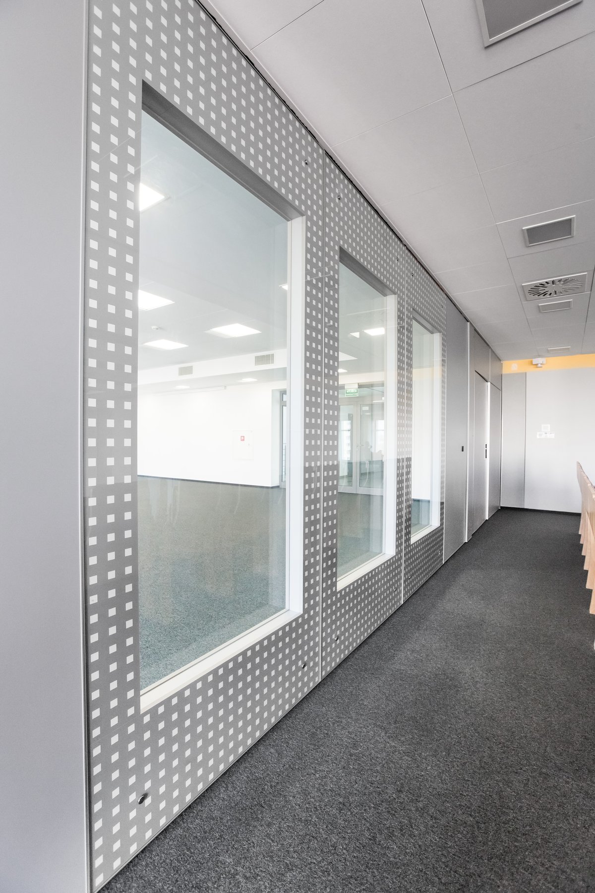 Parete mobile manovrabile per dividere uno spazio aperto in sale più piccole.