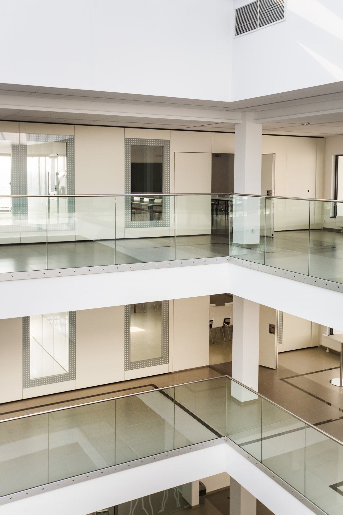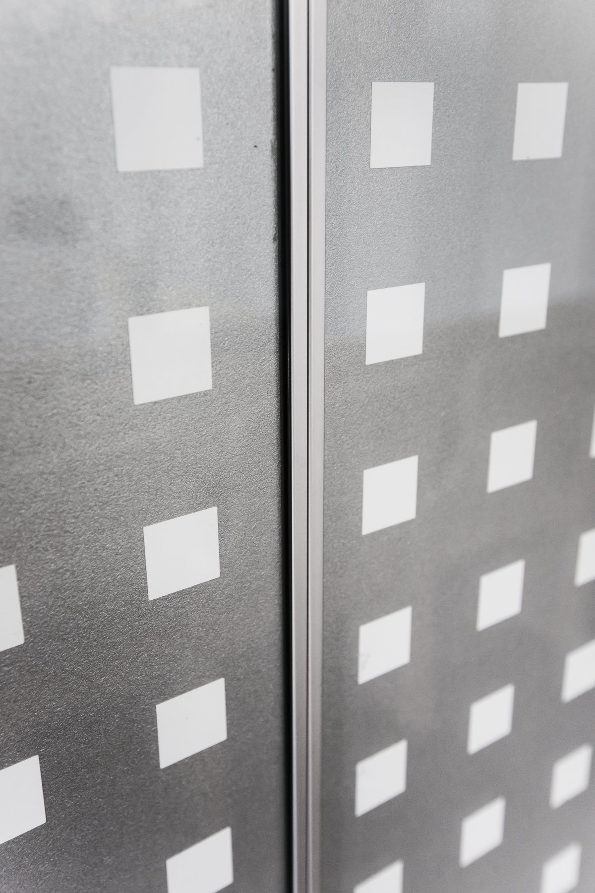 Pannelli in finitura colore bianco con elementi con inserito vetro temperato.